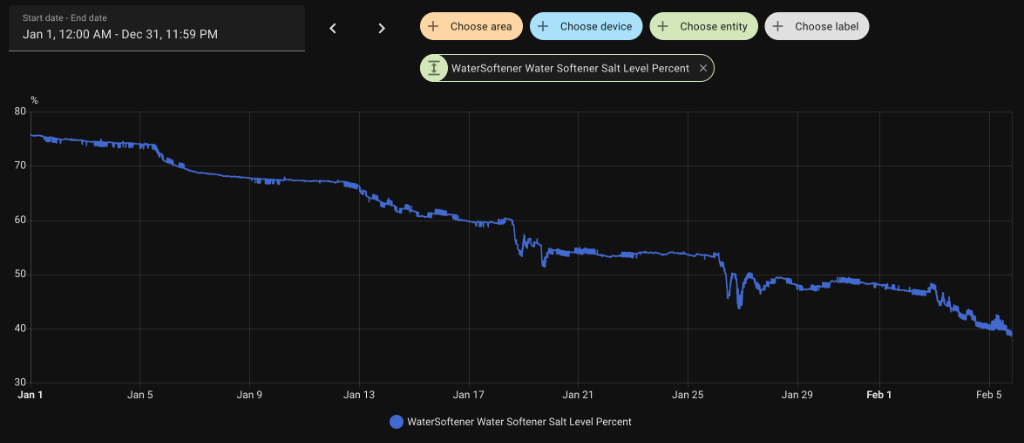 And the best part? You can see the trend over time. You can actually see when the softener regenerates and uses salt.